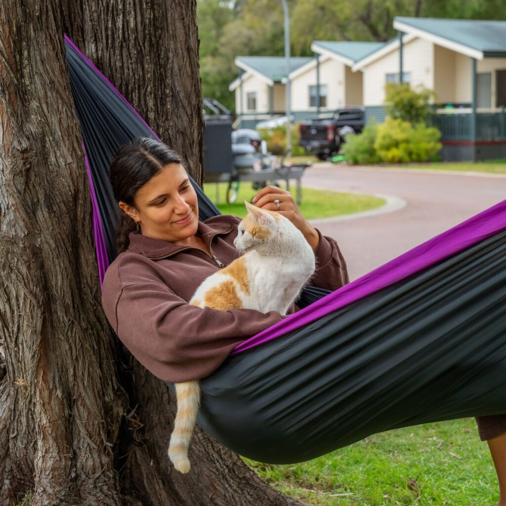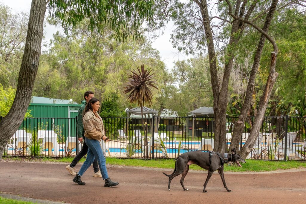 If your ideal getaway includes forest air, open skies, and your furry friend snoozing contentedly at your feet, Lake Brockman Tourist Park delivers. Set beside the crystal-blue waters of Logue Brook Dam, this peaceful pocket invites you to wake to birdsong and drift off beneath a million stars. Pets are welcome on powered and unpowered campsites, and the onsite café offers easy, relaxed meals when you don’t feel like cooking. It’s classic South West camping: simple, serene and beautifully pet friendly.
