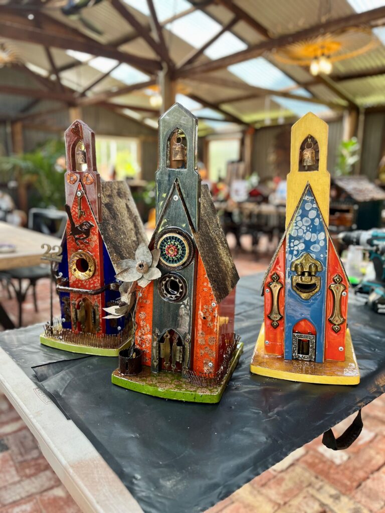 In this full day workshop you will be taught the art of turning trash into treasure, decorating your own rustic one-of-a-kind birdhouse with an array of scrap metal and mixed media, including Powertex and Resin.