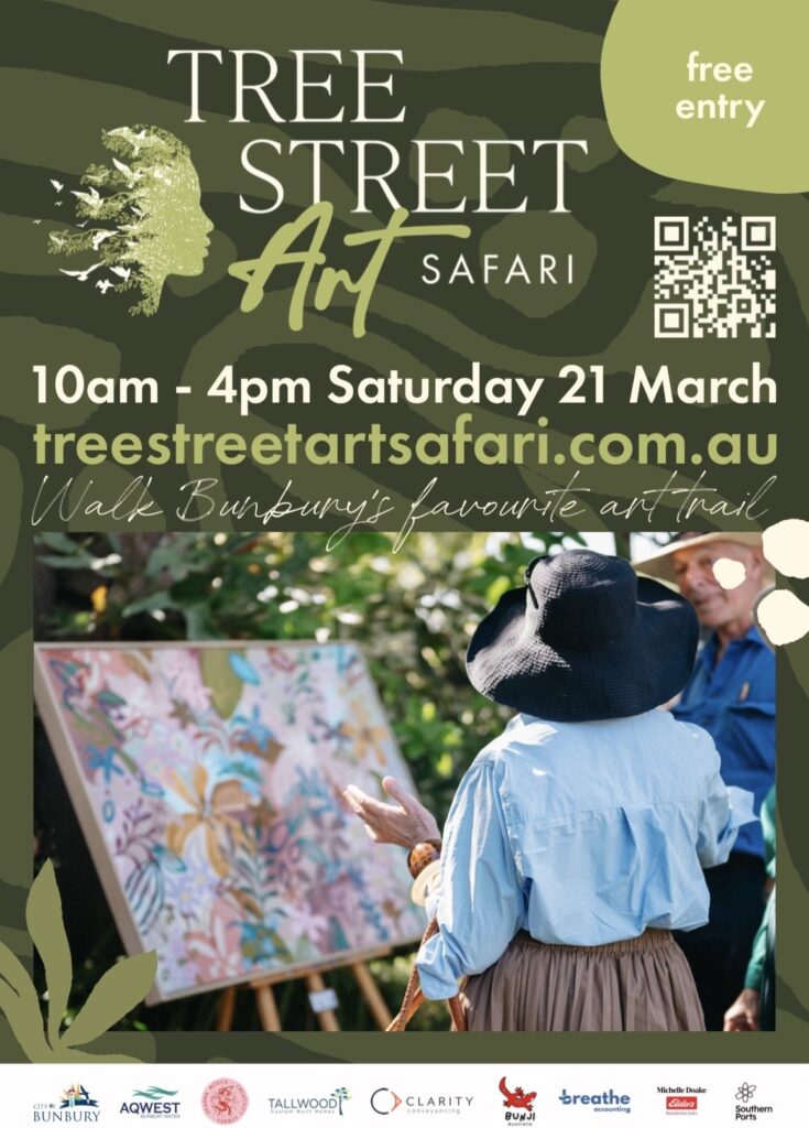 Since it’s inception in 2015, the Tree Street Art Safari has grown to become one of the most anticipated art events in the calendar for Bunbury. Walk your Safari of discovery through streets named after our native trees, just outside the Bunbury CBD! You’ll find beautifully restored homes, innovative new architecture, stunning gardens and artist’s studios. We now have over 90 artists from the Bunbury Geographe region, showcasing their paintings, sculpture, textiles, craft, floral art and creative technologies.