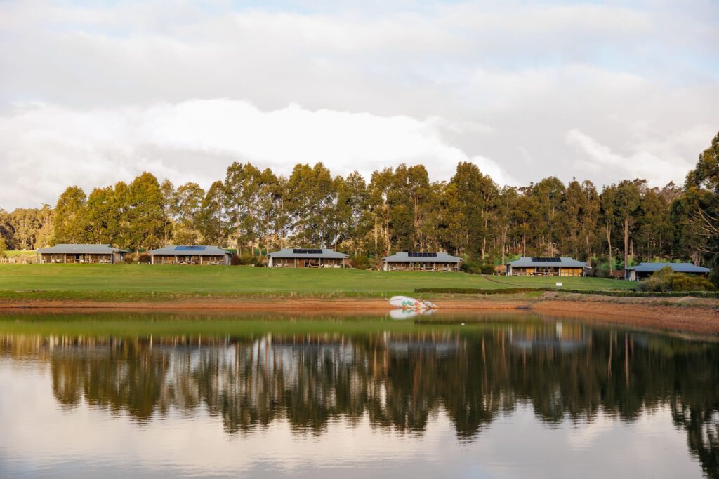 A serene haven of rammed earth lakeside chalets in the Margaret River region.