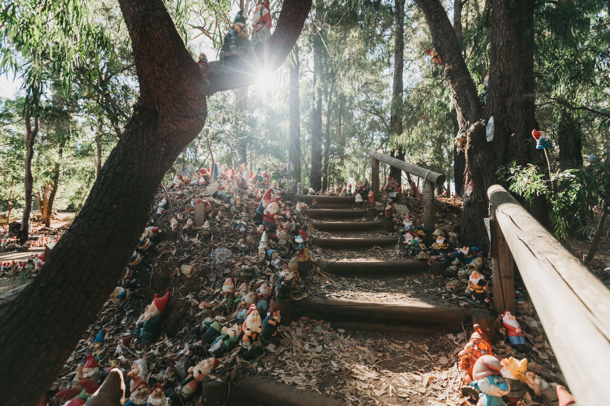 Gnomesville is the magical home of over 7,000 Gnomes who have migrated from all over Australia and overseas. Located by the roundabout at the junction of Wellington Mill and Ferguson Roads, Gnomesville offers magical experience as you wander through villages and glades full of playful, naughty and sentimental Gnomes climbing logs, hanging out in trees, playing cricket, even flying planes!