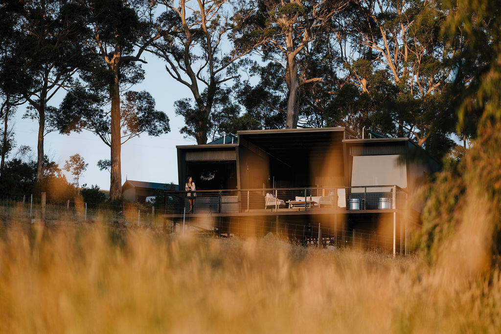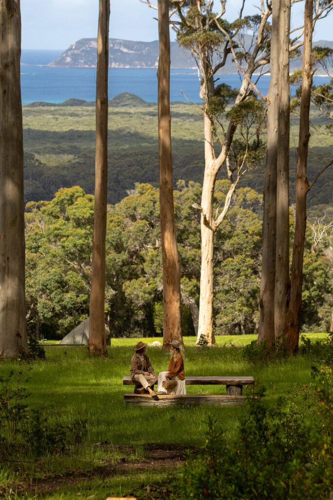 Stay in premium off grid cabin accommodation in Denmark, Western Australia, just a 4.5 hour drive from Perth along the Rainbow Coast. Set on Raintree, an 880 acre oceanfront farm and home to acclaimed paddock to plate venue The Dam, Heyscape’s cabins offer a rare blend of comfort, privacy and immersive nature. Guests wake to sweeping views across towering Karri trees to William Bay National Park, with the sparkling waters of Greens Pool nearby.