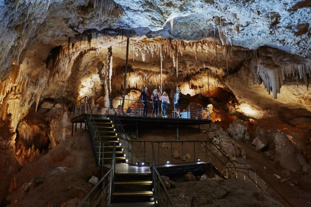 On a one-hour guided tour, you’ll explore three vast chambers adorned with towering stalagmites, delicate straws, intricate shawls, and glittering stalactites that have taken thousands of years to develop.