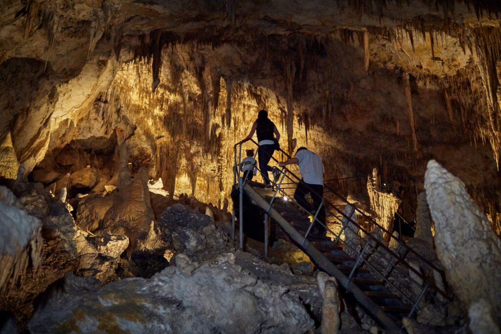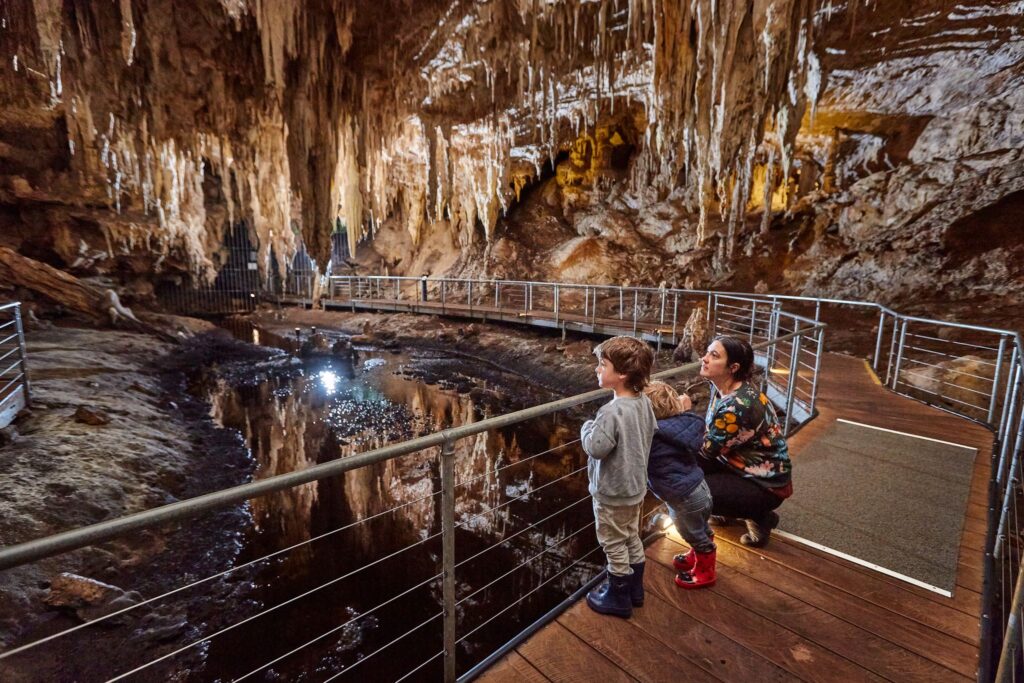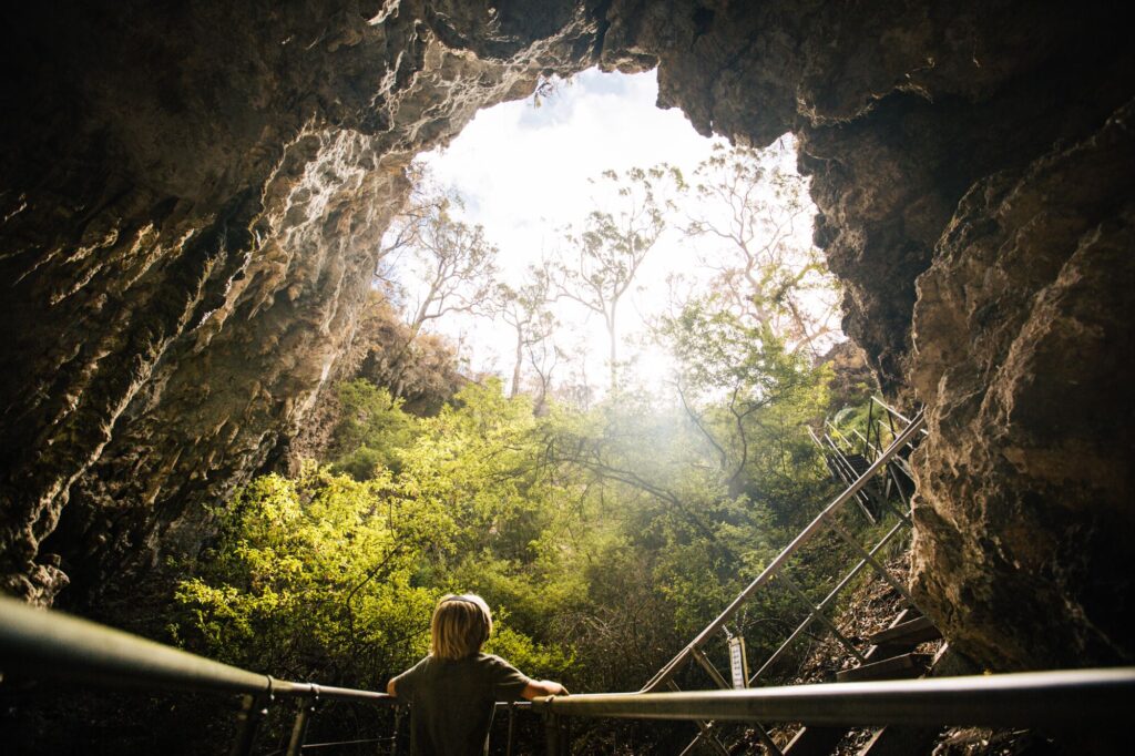 Nestled within the stunning karri and marri forest, Mammoth Cave is a site of incredible natural and historical significance. Once home to ancient fossils of Australia’s megafauna—giant animals that roamed the Earth before their extinction around 46,000 years ago—the cave offers a fascinating glimpse into the past. Don’t miss the 50,000-year-old zygomaturus jawbone, a relic of a large wombat-like herbivore, still embedded in the cave wall.