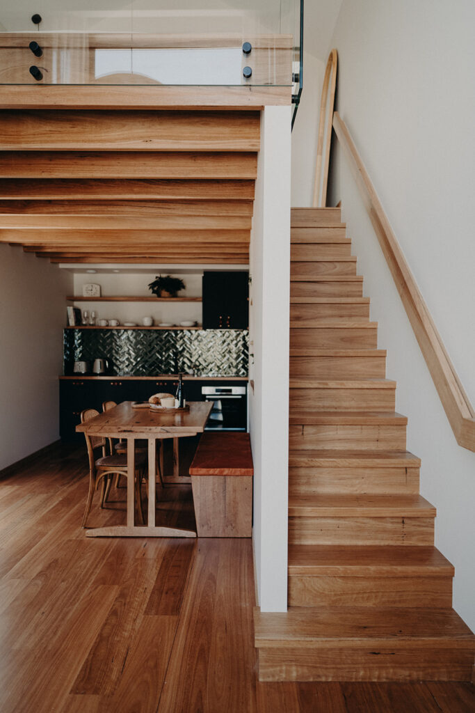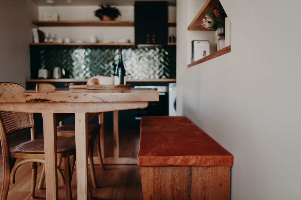 A short distance away and perched high on Mount Melville are the View Street Cottages – Yarri & Tallerack. These architecturally designed one-bedroom studios blend sustainably sourced WA blackbutt timber with floor-to-ceiling windows that frame striking harbour views. Both studios feature a luxurious king bed, full kitchen and bespoke furniture, offering a peaceful retreat in a quiet, leafy neighbourhood within walking distance to local bars, restaurants and Albany’s cultural precinct. Linen curtains, locally produced pantry essentials and a warming wood fireplace complete the experience.