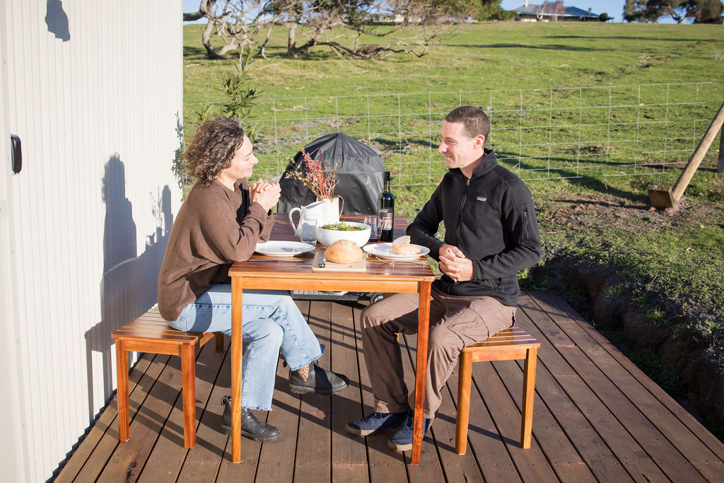Sanctuary Train is a unique railway carriage-themed tiny home. Experience a memorable self-contained stay on a 68-hectare farm and forest property. Everything you need to be warm and comfortable is here – kitchen, bathroom, queen bedroom, lounge, bbq, north-facing deck.Â