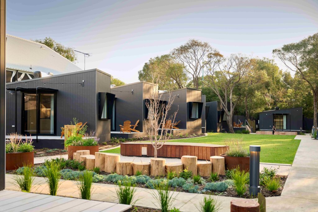 Southcamp offers 18 cosy timber cabins amongst a bush setting nestled along Dugalup Brook, right in the heart of Dunsborough. For longer stays, our two apartments provide a little more space for larger groups. Both cabins and apartments are fully set-up for a south-west getaway, complete with surf boards and bikes to hire, vinyl to spin and a good book to read… do as much or as little as you like.
