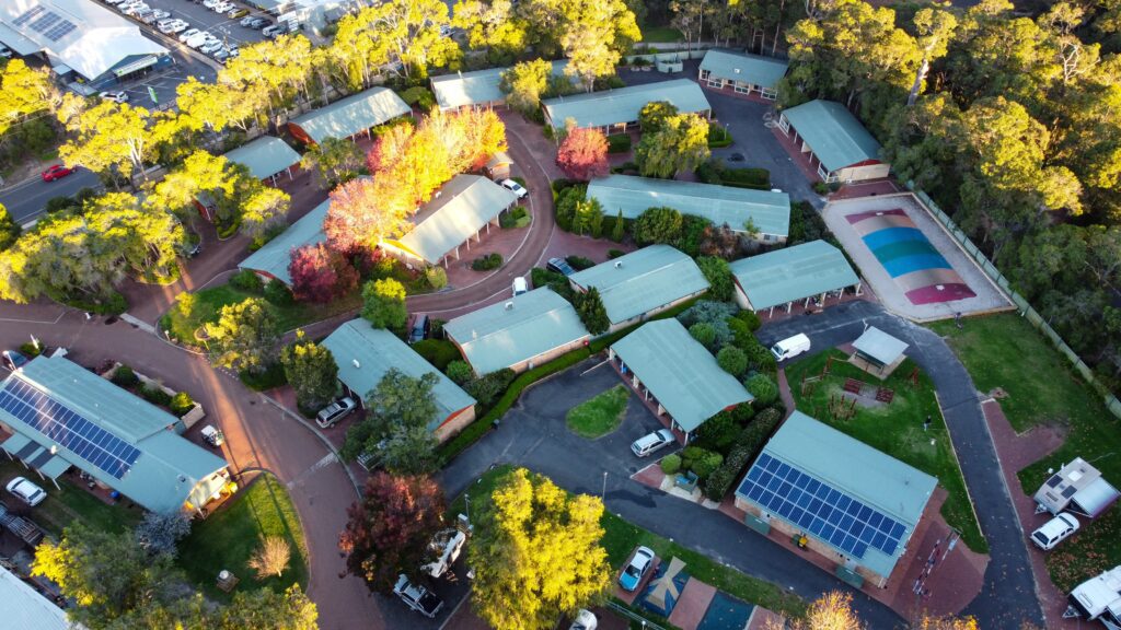 Margaret River Tourist Park has a range of accommodation options to suit all travellers, including one, two and three-bedroom cottages, cabins, or caravan and camping sites. With a swimming pool, jumping pillow, playgrounds and games room, this park is ideal for families looking for an affordable stay in Margaret River. It is also pet-friendly on sites! Roofed Accommodation Our recently renovated one bedroom, two bedroom and three bedroom cottages are fully self-contained, some even with dishwashers and coffee-pod machines so you can truly relax and kick back in Margaret River. Affordable options such as triplexes, tourist triplexes, deluxe and studio cabins are also available, all with kitchens or kitchenettes and bathrooms. Caravan & Camping Sites Powered ensuite sites are available for guests who prefer their own private toilet and shower, while powered caravan and camping sites are also available. Unpowered caravan and camping sites are also on offer. All sites are pet-friendly all year-round. Park Facilities The park has plenty of amenities for guests to enjoy, including: