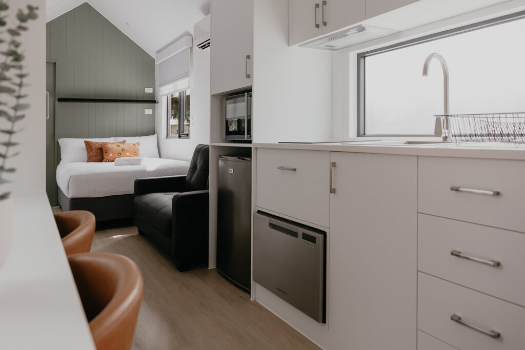 Let the Indian Ocean rock you to sleep and the western sun set the sky ablaze. At Tasman Holiday Parks – Yallingup Beach, shady banksia trees shelter grassy sites for vans and tents, while cabins sit just steps from the surf. Mornings roll in with white sand and legendary waves – whether you’re chasing a fish, a barrel, or a quiet moment by the lagoon. Here, life falls into the easy rhythm of the sea.