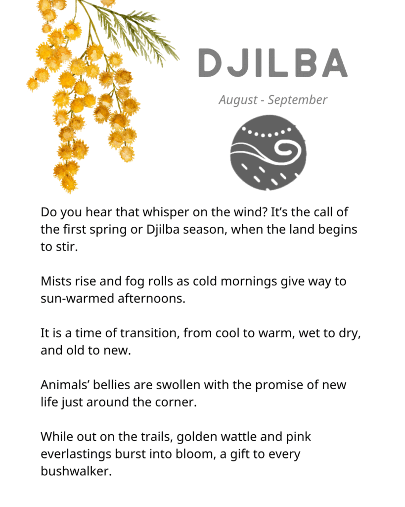 The six Noongar seasons represent the seasonal changes we see across the South West annually, which come in weather patterns, food availability, and flora and fauna.