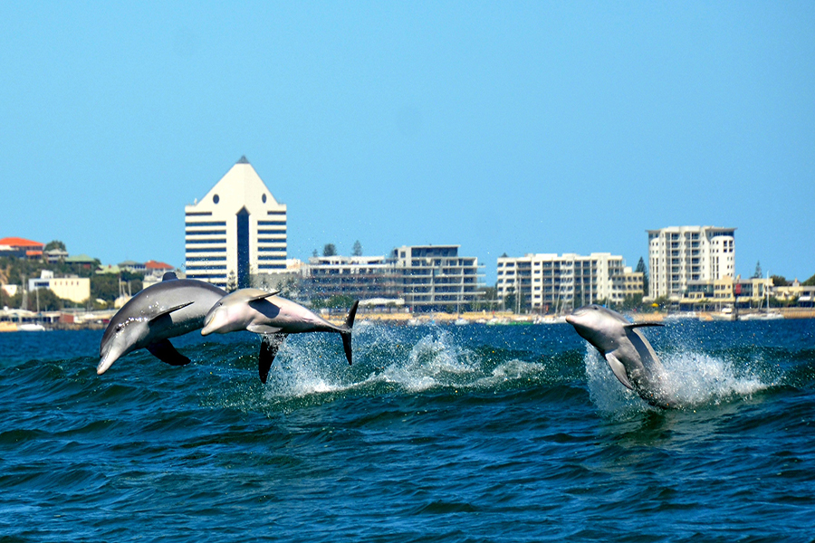 Bunbury and Koombana Bay offer one of the best locations for dolphin-human interaction. The Interaction Zone is a designated dolphin protection area, established under strict license conditions set by the Department of Biodiversity, Conservation and Attractions (DBCA). Since 1989, the Dolphin Discovery Centre has facilitated unique beach-based interactions in this zone. Trained Dolphin Volunteers are always present to oversee the guidelines and provide information to guests. While sightings are not guaranteed, dolphins most commonly visit between 8am and 12pm during the warmer months of Oct – May.