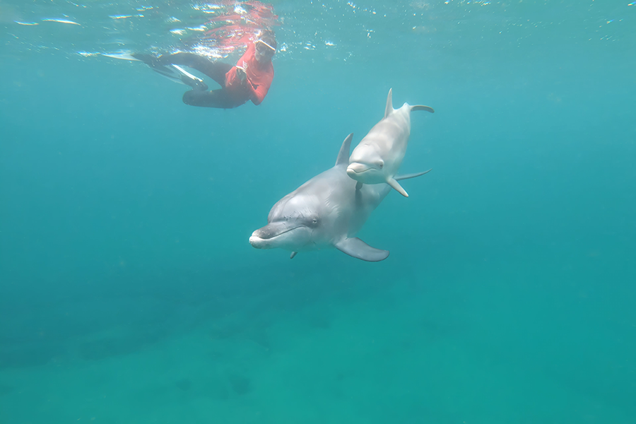 The Centre’s Swim with the Dolphins tour offers guests an intimate opportunity to swim with wild Bottlenose Dolphins in their natural habitat. This popular and exhilarating experience is guided by trained volunteers and an experienced tour leader. Depending on dolphin sightings, participants enter the water where dolphins may choose to visit and interact. We guarantee to see dolphins or you go again for free.
